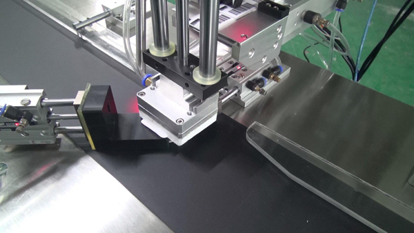 4、氣缸定位產品之后,將信號傳送到PLC然后至標頭,出標機構將標簽剝離至吸頭,吸頭直接下壓貼產品進行覆標