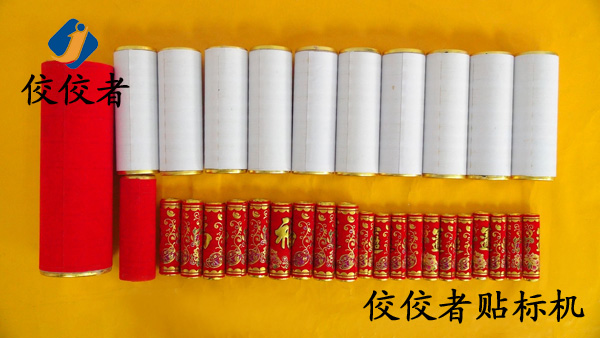 我們日常生活中可能也見過一些小圓筒上面緊緊地包裹著一層標簽,最常見的就是很多裝飾用的非常漂亮的紅色鞭炮筒,便是用熱熔膠紙筒貼標機(又稱熱熔膠貼標機)貼上的標簽,如下圖: