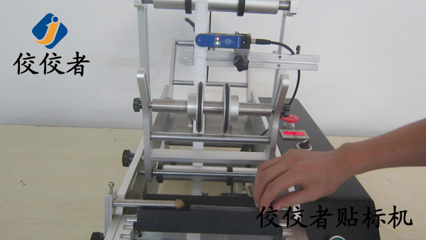 圓珠筆貼標機,適用于各種規格的圓柱形物體的貼標,小錐度圓瓶貼標,如木糖醇、化妝品圓瓶、酒瓶等。可實現全周/半周貼標、圓周正背面貼標,正背標間距可任意調整,也可稱上圖中的機器為酒瓶貼標機。