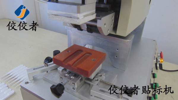 圖四的步驟是踩腳踏,此時貼標過程已經完成。看似只有一秒鐘的時間,在這個時間中機器進行了一系列的工作。吸標頭向下垂直運動到指定位置,標簽剝離機構同時出標,當標簽出到1/2處時,吸氣裝置啟動并吸住標簽,待標簽完全剝離,標簽也完全被吸在貼標頭上了。此時貼標頭向下貼標到指定位置,這里說的就是產品放置的位置了。至此,這臺貼標簽機的貼標過程就已經完成了.(操作過程:放產品—>貼標并覆標(設備自動實現)—>取出已貼標產品)。如下 圖五、圖六: