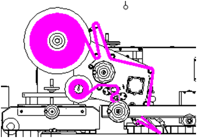 按圖示出標(biāo)方向,把標(biāo)簽料卷裝入,再把三角形料盤套上并裝好扭緊;