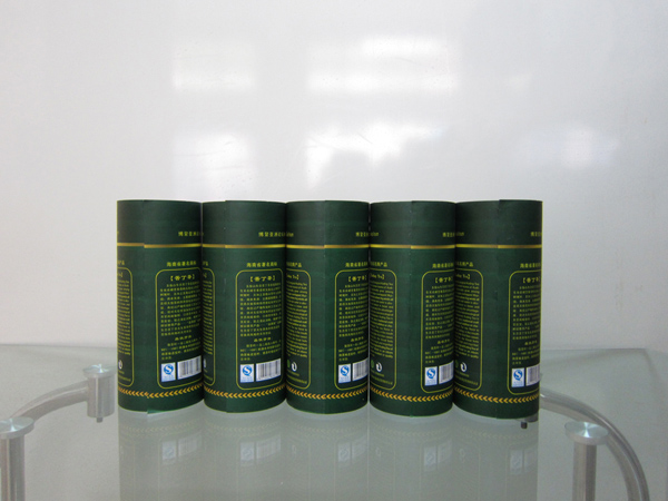 上圖是對(duì)圓形紙筒進(jìn)行上糊貼標(biāo)的樣品圖片,實(shí)際產(chǎn)品其實(shí)是茶葉罐,所以又叫其為茶葉罐貼標(biāo)機(jī)。