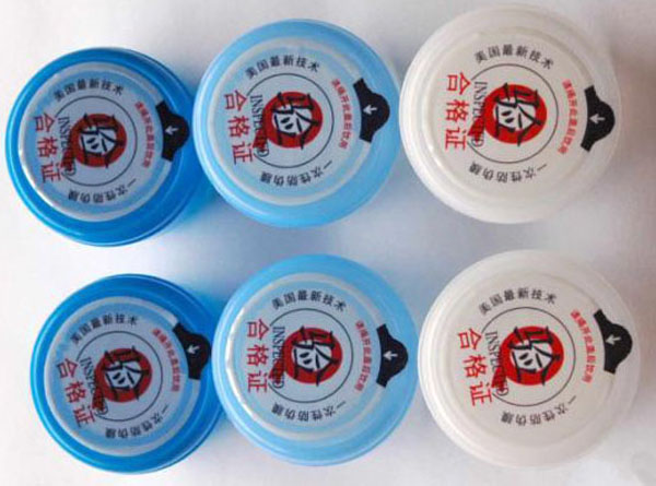 上圖是桶裝水貼標機對桶蓋進行貼標的樣品,此蓋又稱聰明蓋。