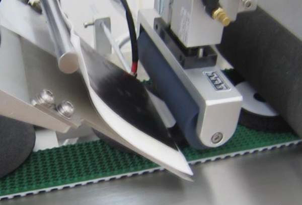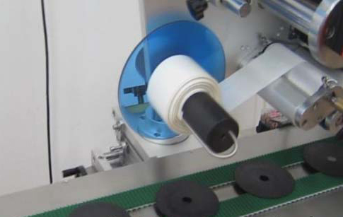 上圖這張圖片是已經被送到貼標頭的位置了.而且正在貼不干膠.下面來張更具體一點的