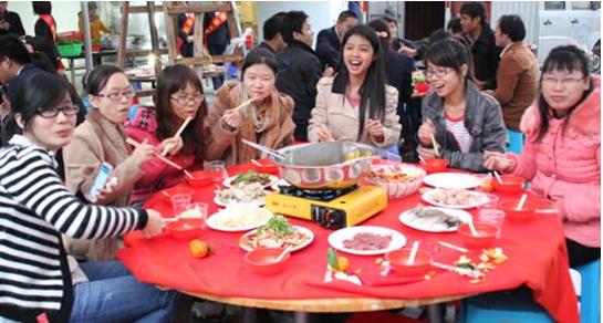 伴隨著一片片掌聲的揚起,我們的后勤部隊把所有吃的東西都搬了上來,晚宴也在進行中。灑桌上,熱湯的沸滾聲、同事們的嘻笑聲以及臺上正再進行的腦筋急轉(zhuǎn)彎的節(jié)目。表情如此多樣。