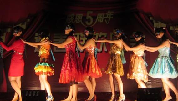 在主持人宣布晚會開始前,市場部的同事們的一場甩蔥熱舞,拉動了全場的氣氛。